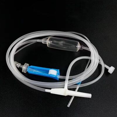 Conjunto de perfusão intravenosa transparente com regulador de caudal ajustável e 60 gotas/ ml para uso médico